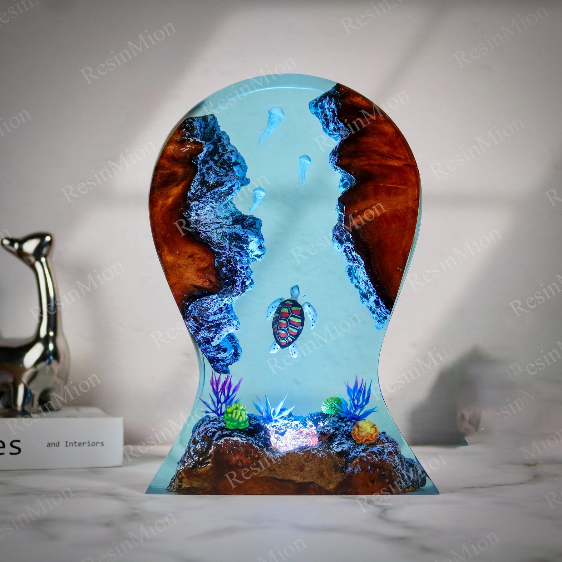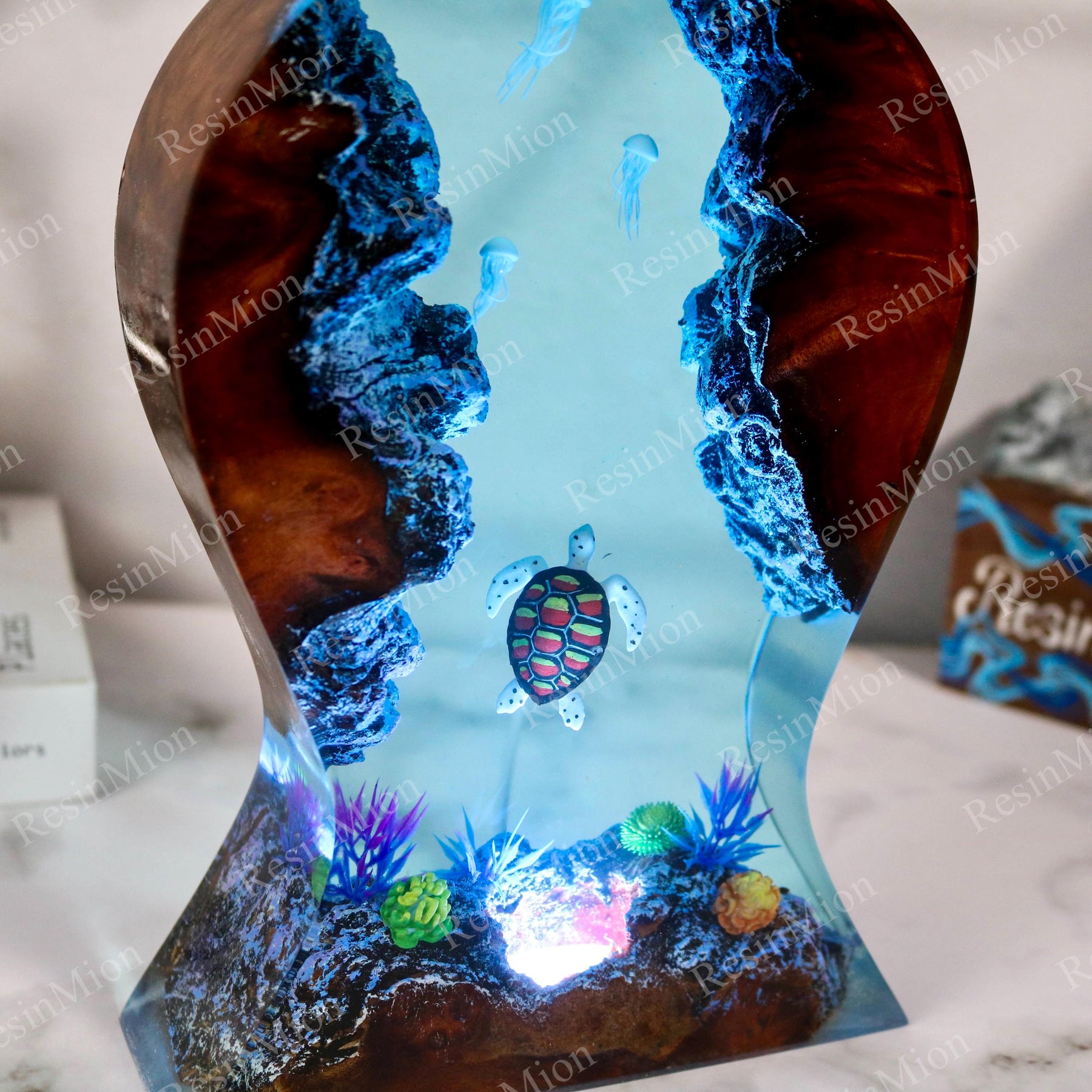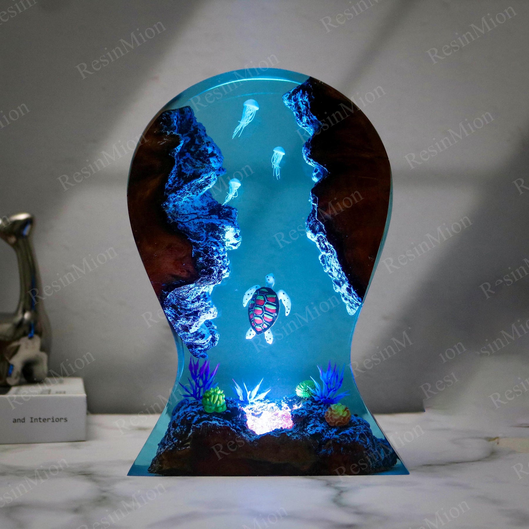 Light comes in from the top and illuminates the diver and Shark in the cave. Turn on the lights at night, your room will be full of this mysterious color. The Epoxy Resin Light Lamp can be used as a desk lamp, placed on a desk or at home, and is also a good decoration. Just turn on the light and all the sorrow, loneliness, and hard work will fade away.