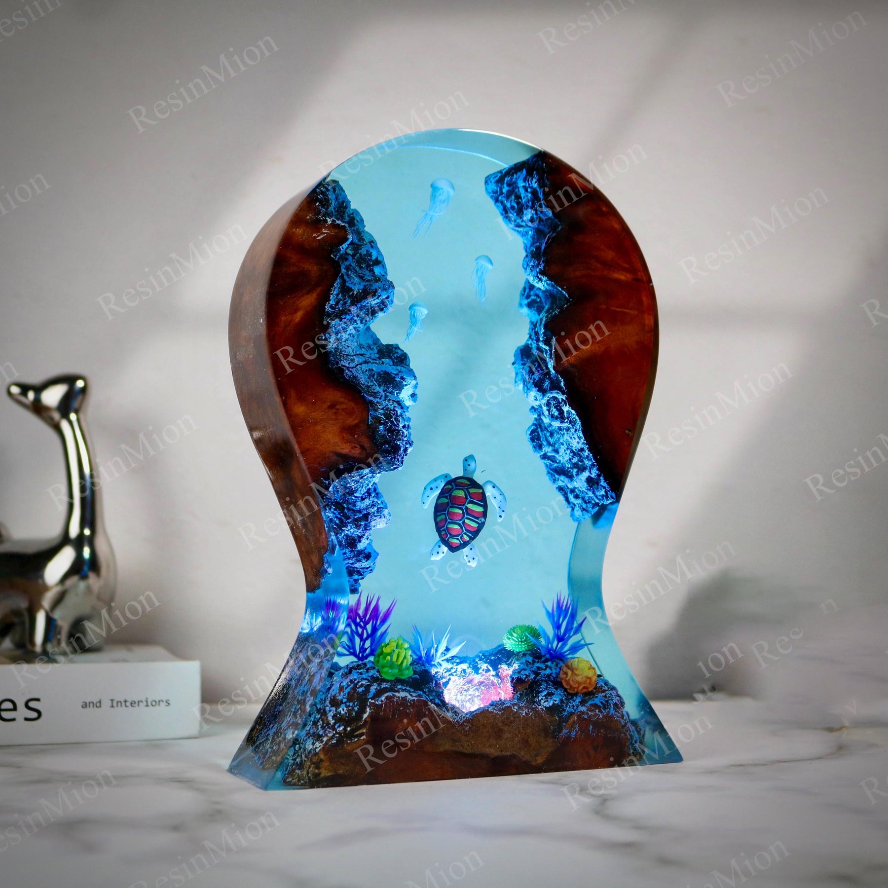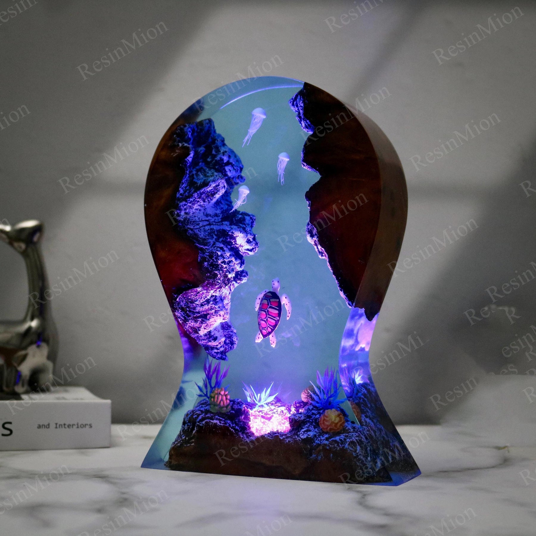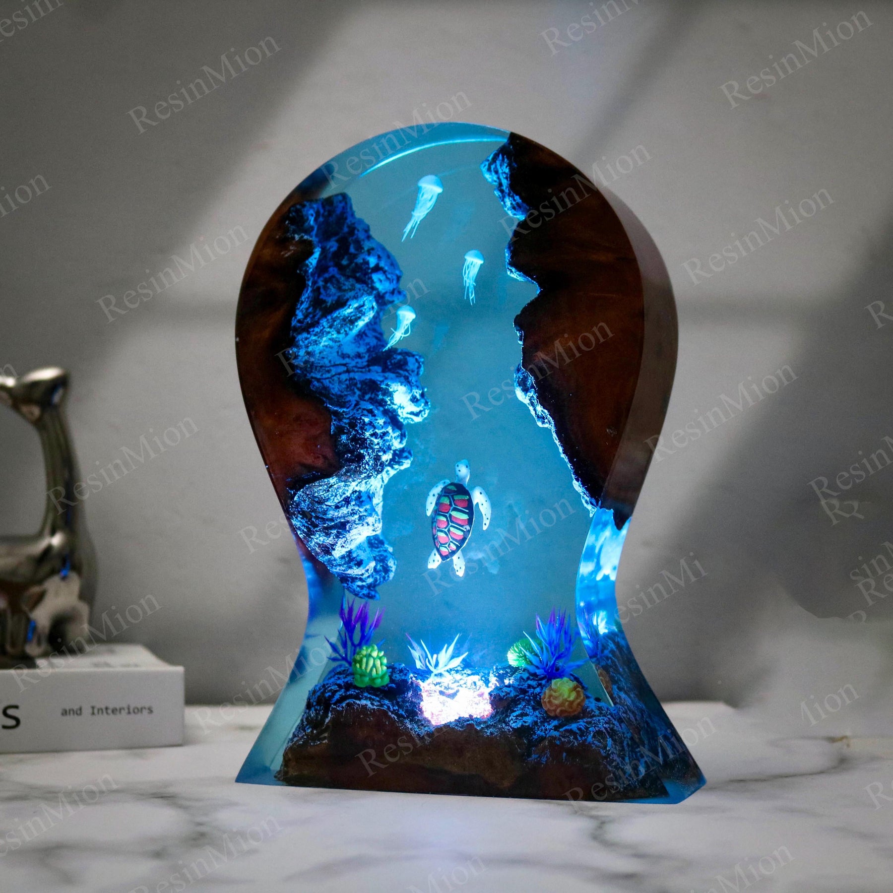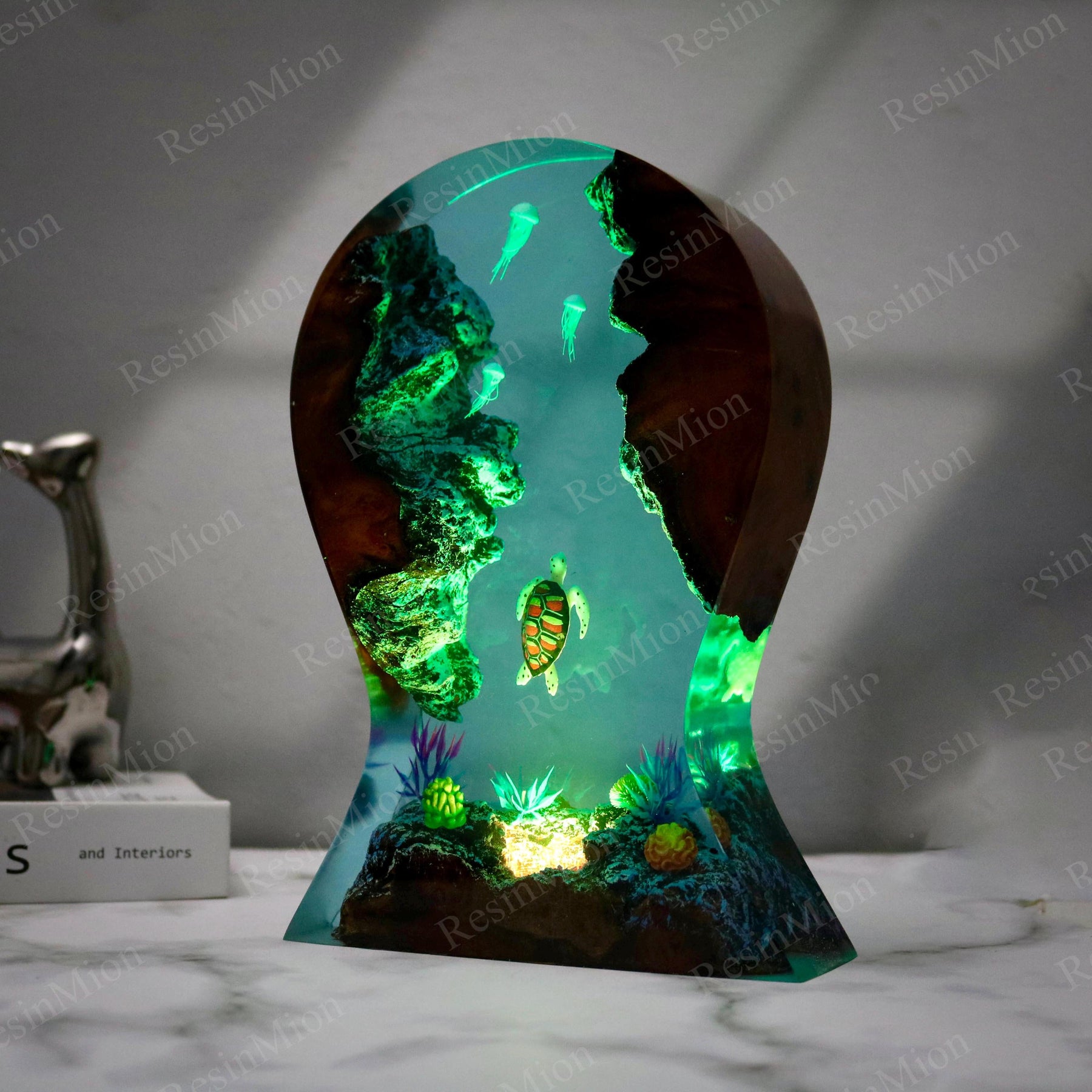 Light comes in from the top and illuminates the diver and Shark in the cave. Turn on the lights at night, your room will be full of this mysterious color. The Epoxy Resin Light Lamp can be used as a desk lamp, placed on a desk or at home, and is also a good decoration. Just turn on the light and all the sorrow, loneliness, and hard work will fade away.